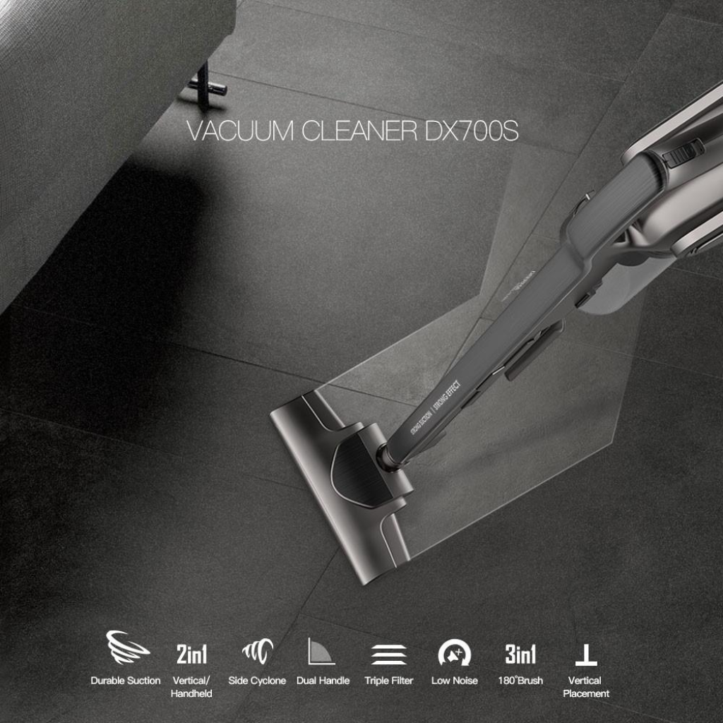- Máy hút bụi DX700s khắc phục được những nhược điểm của những dòng máy hút bụi công suất lớn như cồng kềnh, khó di chuyển và không hút được những khe rãnh nhỏ.